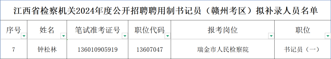 附件:江西省检察机关2024年度公开招聘聘用制书记员(赣州考区)拟补录人员名单