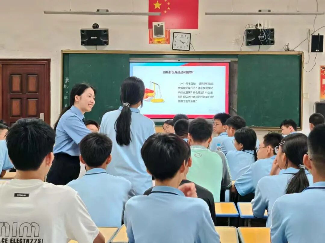 在瑞金市第一中学、红井小学、思源学校等多所学校,检察干警围绕违法与犯罪辨析、校规校纪衔接与防范校园欺凌等重点内容,开展了一系列沉浸式法治教育活动。课堂上,检察干警不再是单纯讲解条文,而是通过情景模拟、互动问答等多种形式,将真实案例转化为生动易懂的教学素材,让学生在参与中理解法律边界、感知责任意义。这种贴近学生的授课方式,不仅有效激发了同学们学法的兴趣,更切实增强了他们的法治意识和自我保护能力,真正让规则意识、法律观念融入成长日常。