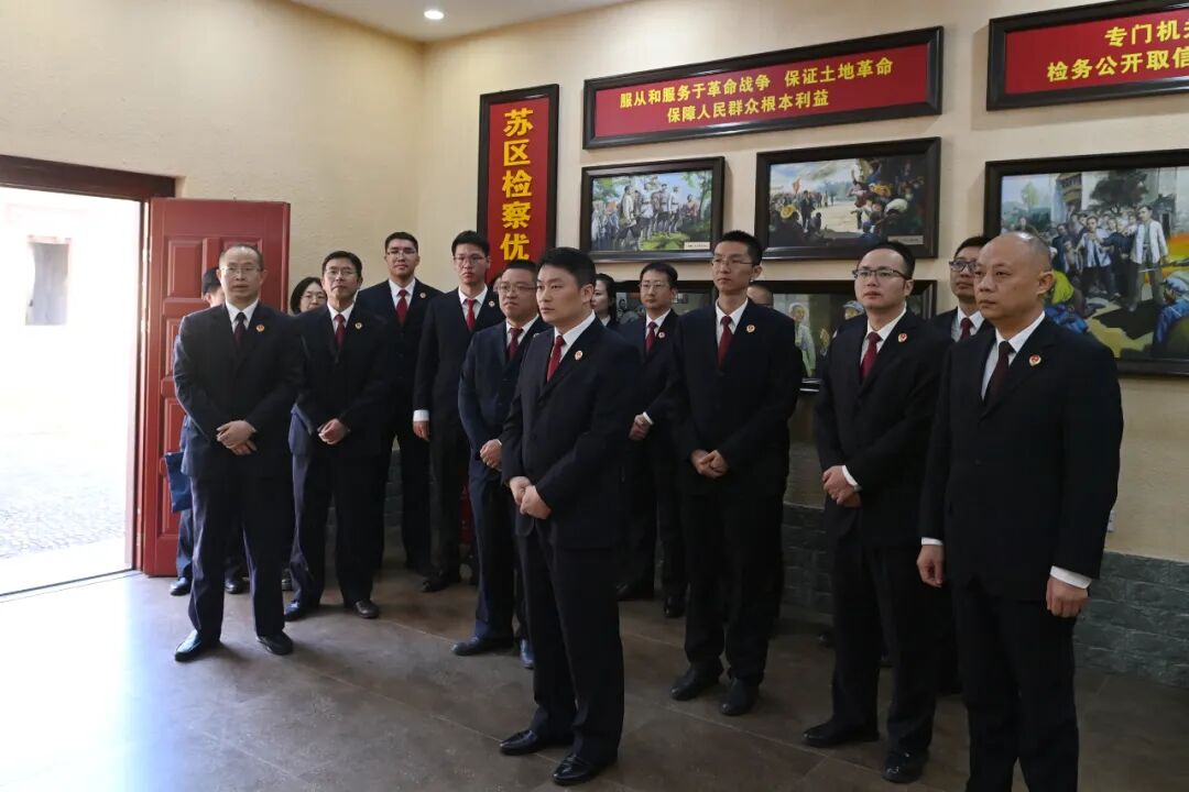 为强化学习效果,组织全体人员在工农检察委员会旧址重温入党誓词,聆听人民检察制度发展历程,仔细观看检察史陈列馆的图片,感悟检察先辈在极其艰苦的革命年代创造性地开展苏区检察工作的无畏勇气与执法为民情怀,传承红色基因,赓续红色血脉,汲取奋进力量。