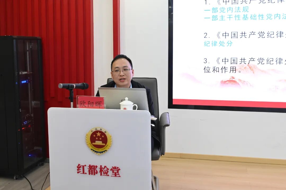 轮训期间,特别邀请了赣州市委党校法学教研室主任、副教授华阳标、瑞金市委党校常务副校长石恒艮等授课老师,围绕深入学习贯彻党的二十届四中全会精神、习近平总书记关于党的建设的重要思想等方面进行专题授课,进一步提升了全体人员的政治理论水平。市纪委监委案件审理室主任欧阳晖同志对《中国共产党纪律处分条例》进行解读,市委保密和机要局密码通信股股长章蔚莹同志讲解保密知识,我院第三检察部副主任刘德亮同志对“三个规定”等重大事项的填报进行了培训。