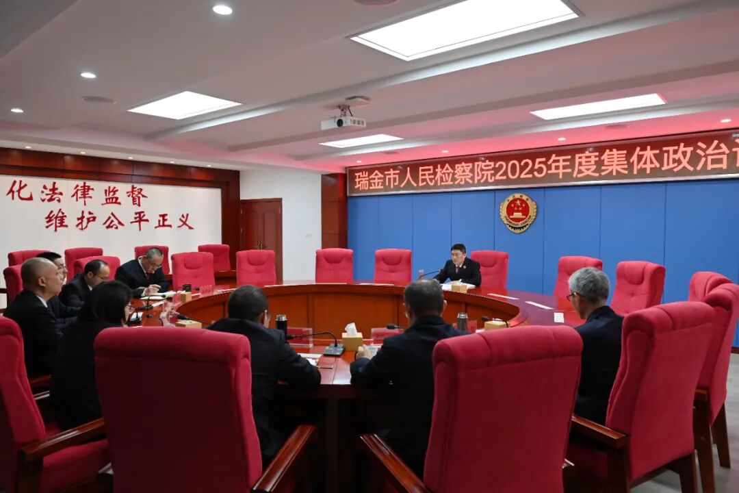 为贯彻落实中央、省委和赣州市委、瑞金市委关于开展政治谈话加强对“一把手”和领导班子监督的有关部署要求,持续推进全面从严管党治检向纵深发展,12月28日,党组书记、检察长高金旺对全体班子成员、科级干部开展2025年度集体政治谈话。