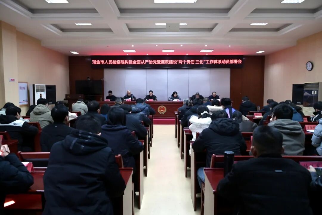 1月9日,瑞金市人民检察院召开构建全面从严治党暨廉政建设“两个责任‘三化’”工作体系动员部署会。党组书记、检察长高金旺出席会议并讲话,党组副书记、副检察长吴金主持会议,全体干警职工参加。